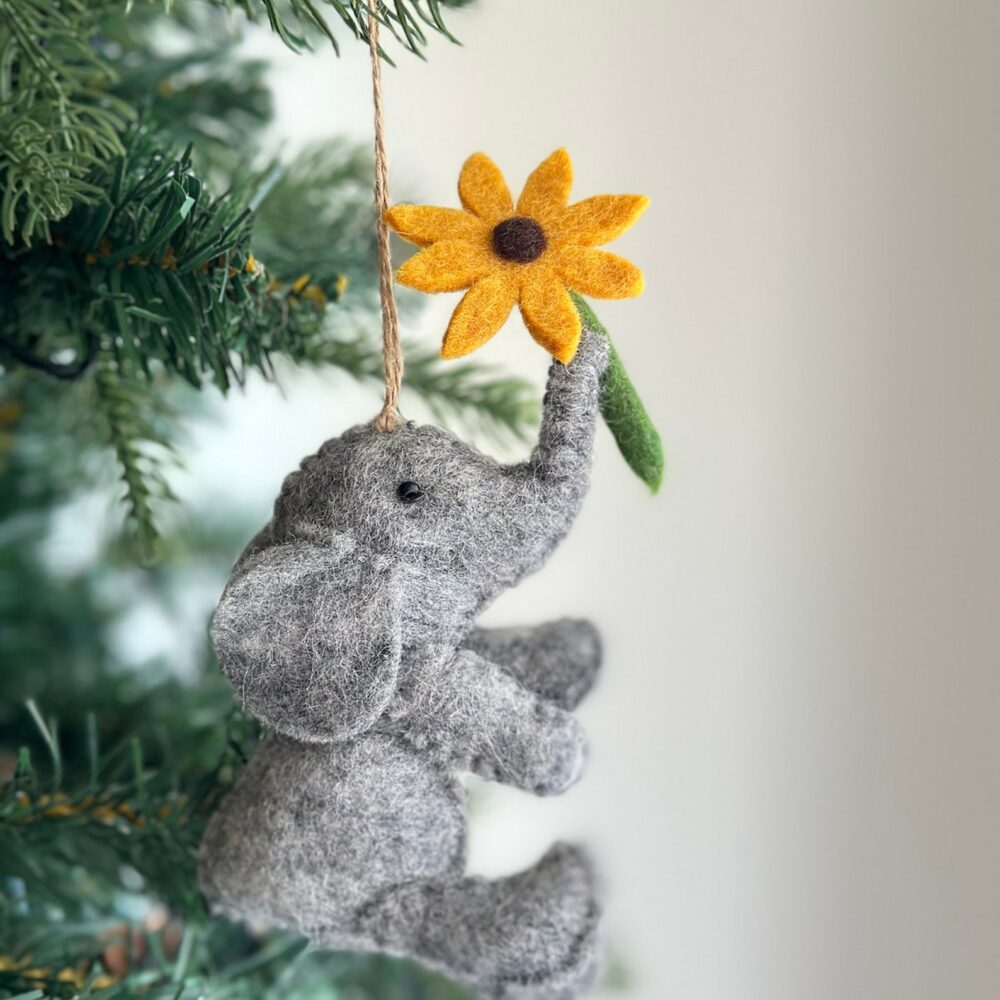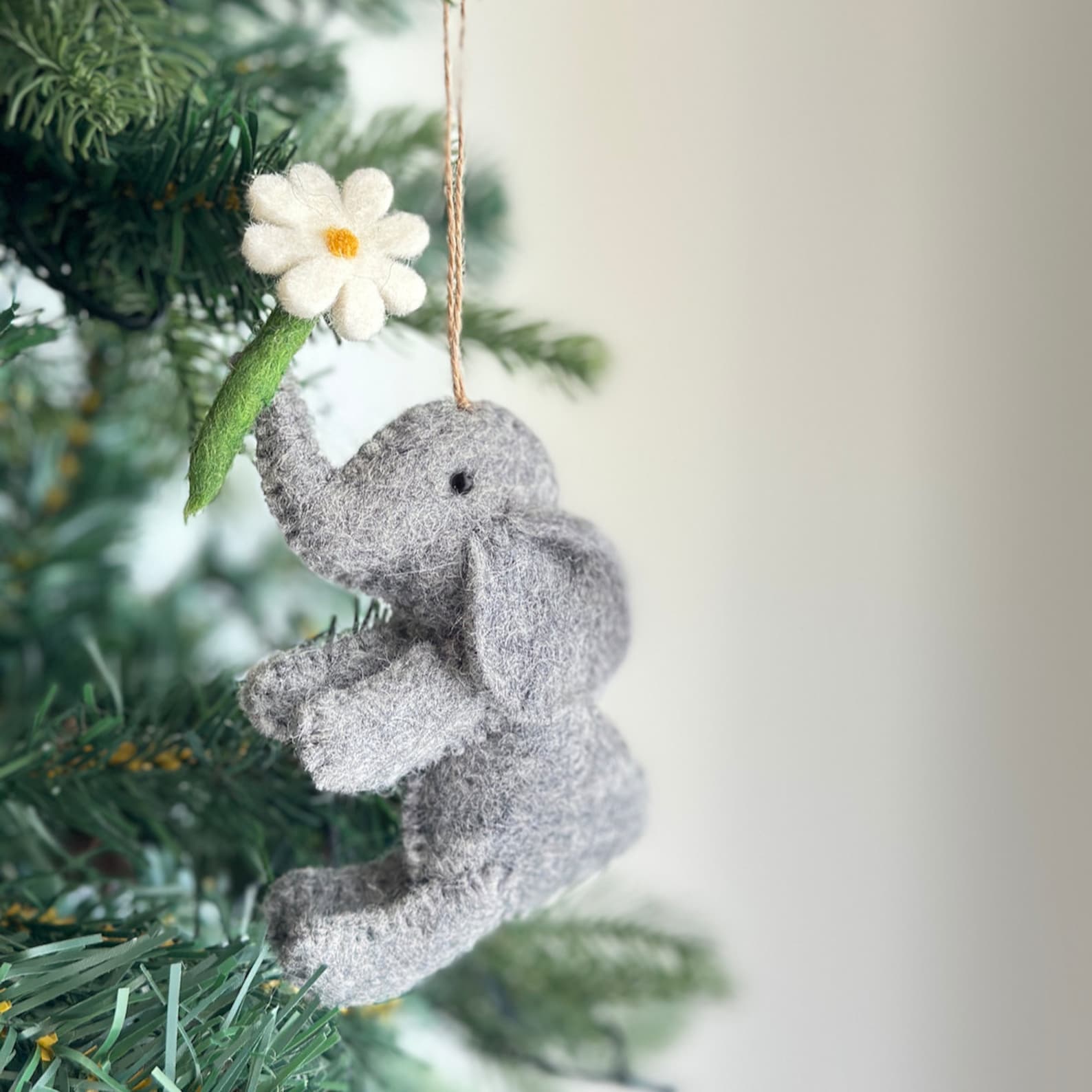 Felt Elephant with Star Christmas Ornament, Twine Thread Attached