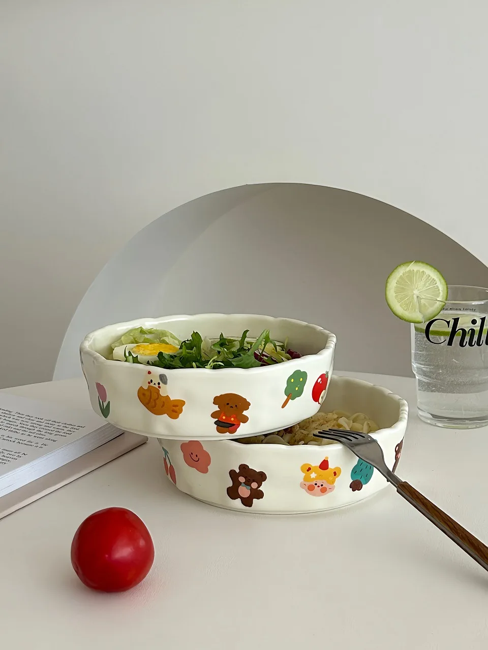 INS Cute Cream Little Bear Plate Ceramic Deep Plate