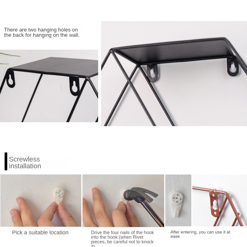 Iron Hexagonal Grid Wall Frame Collection Rack